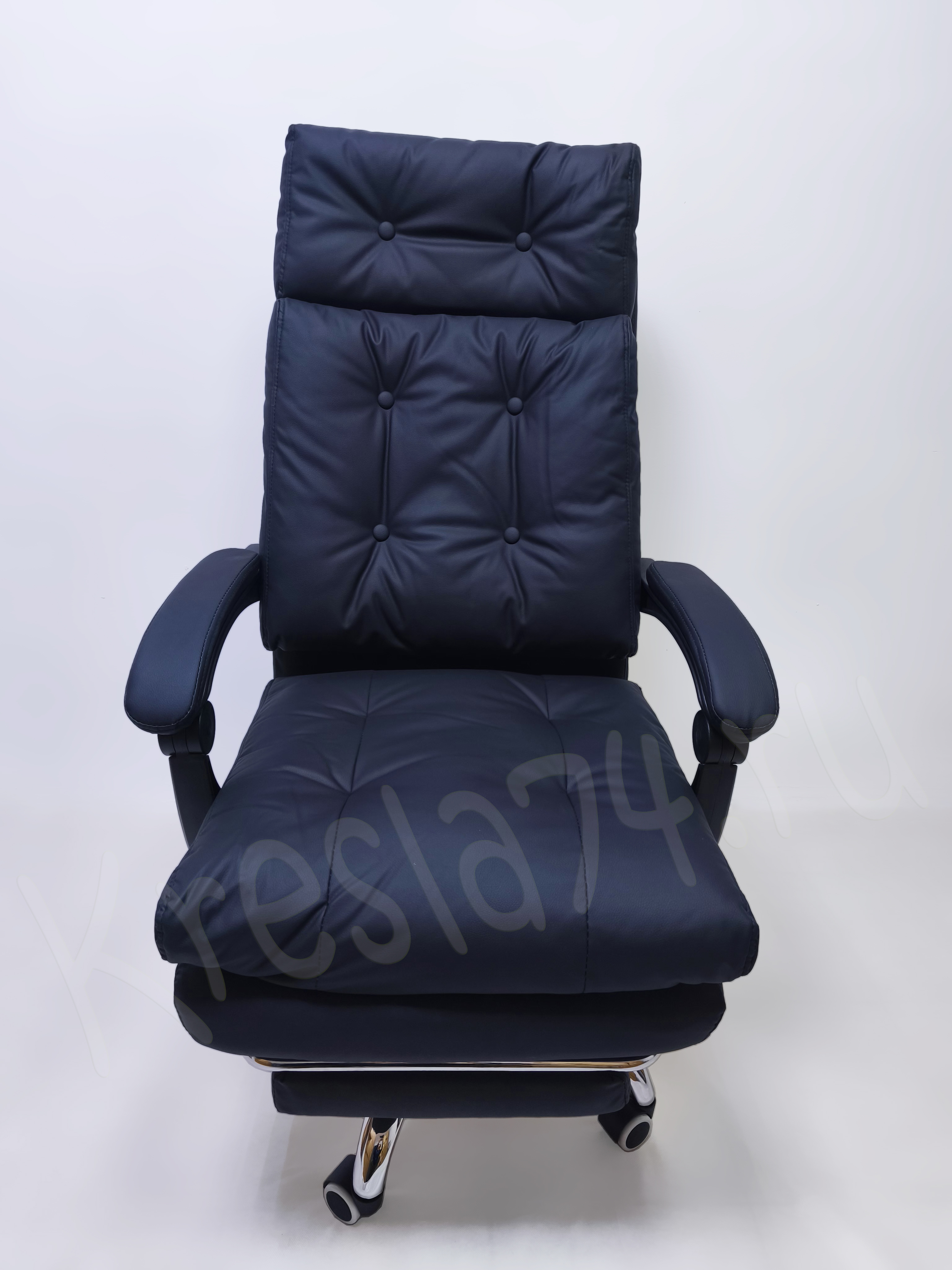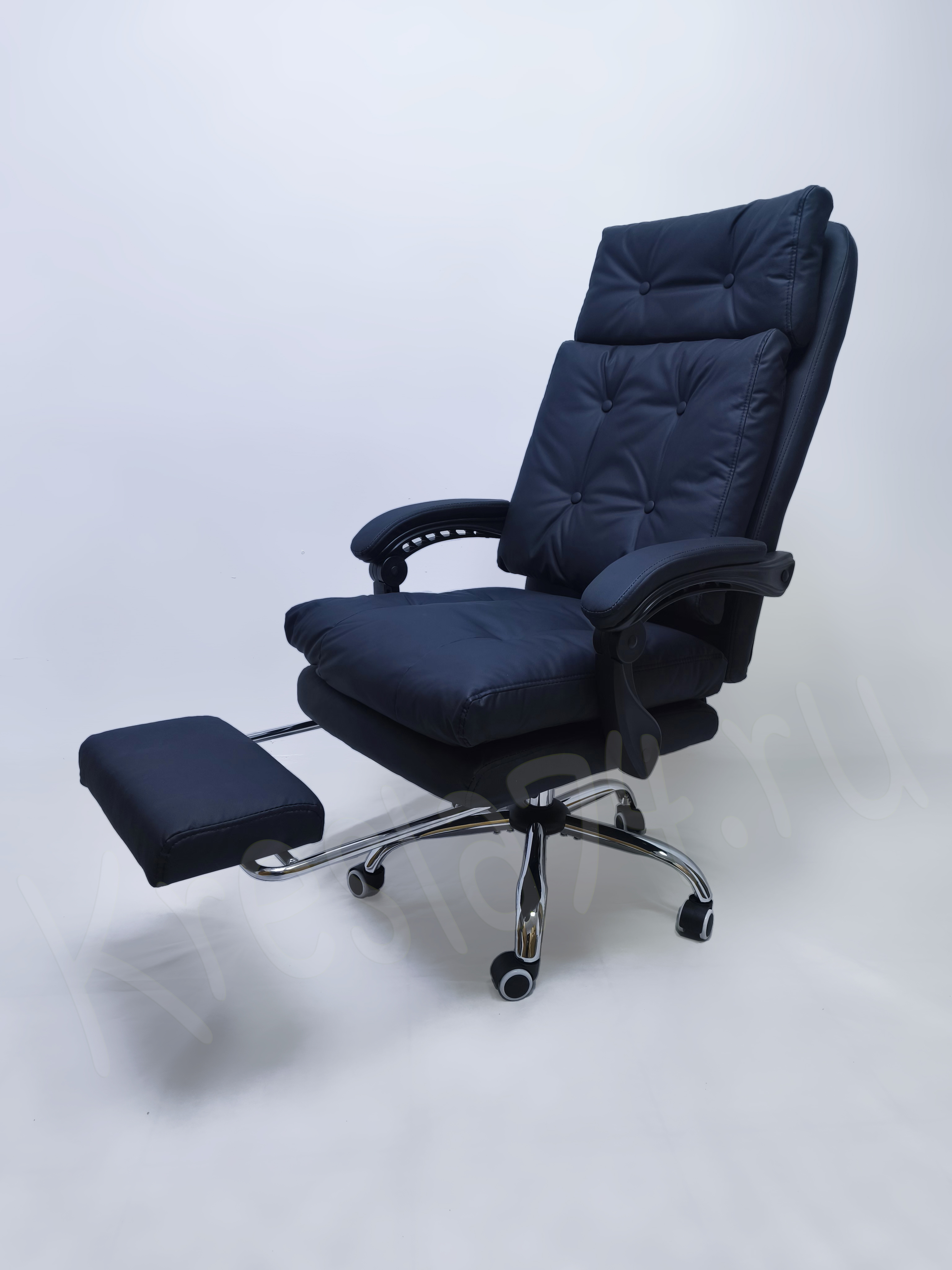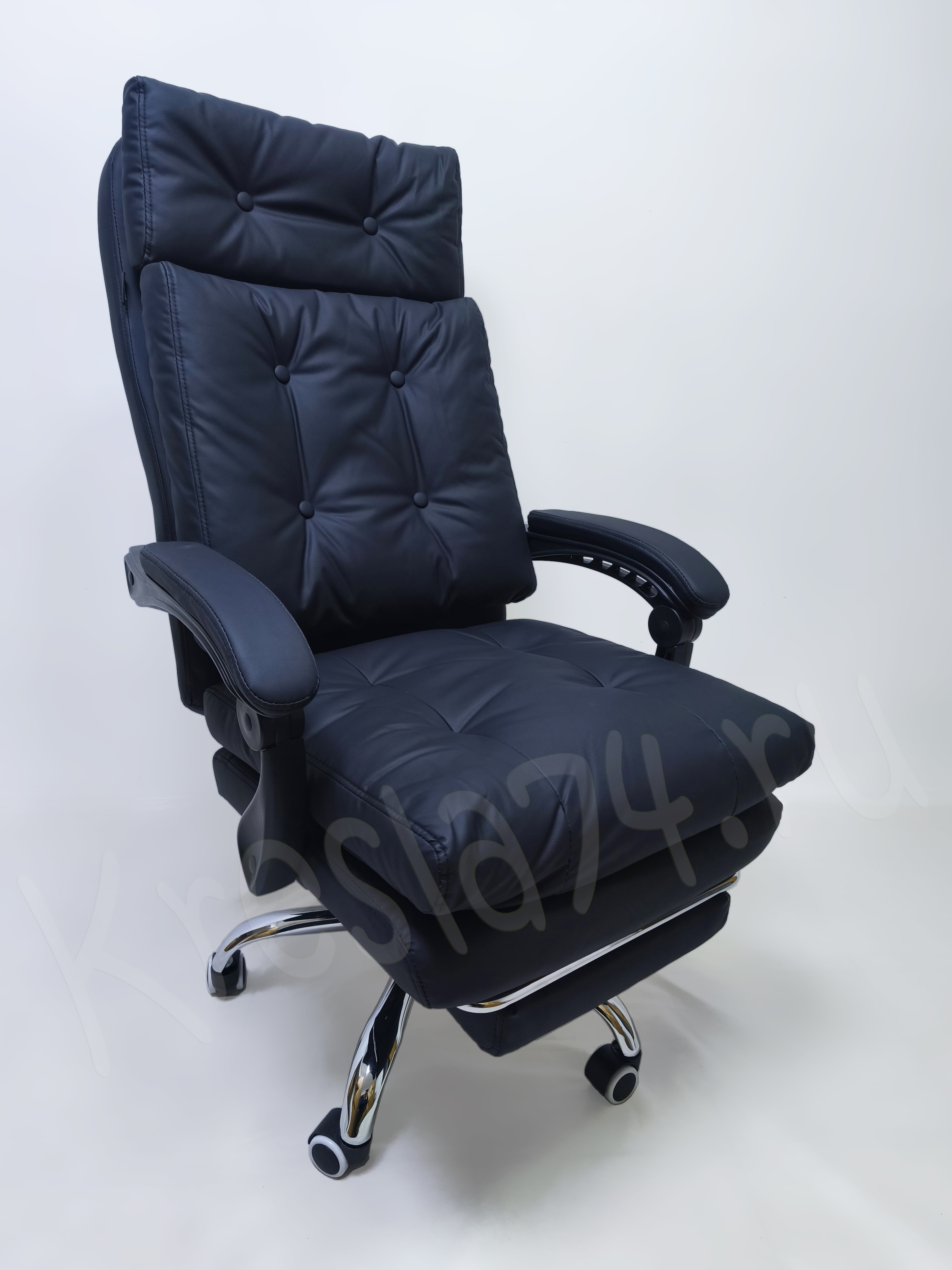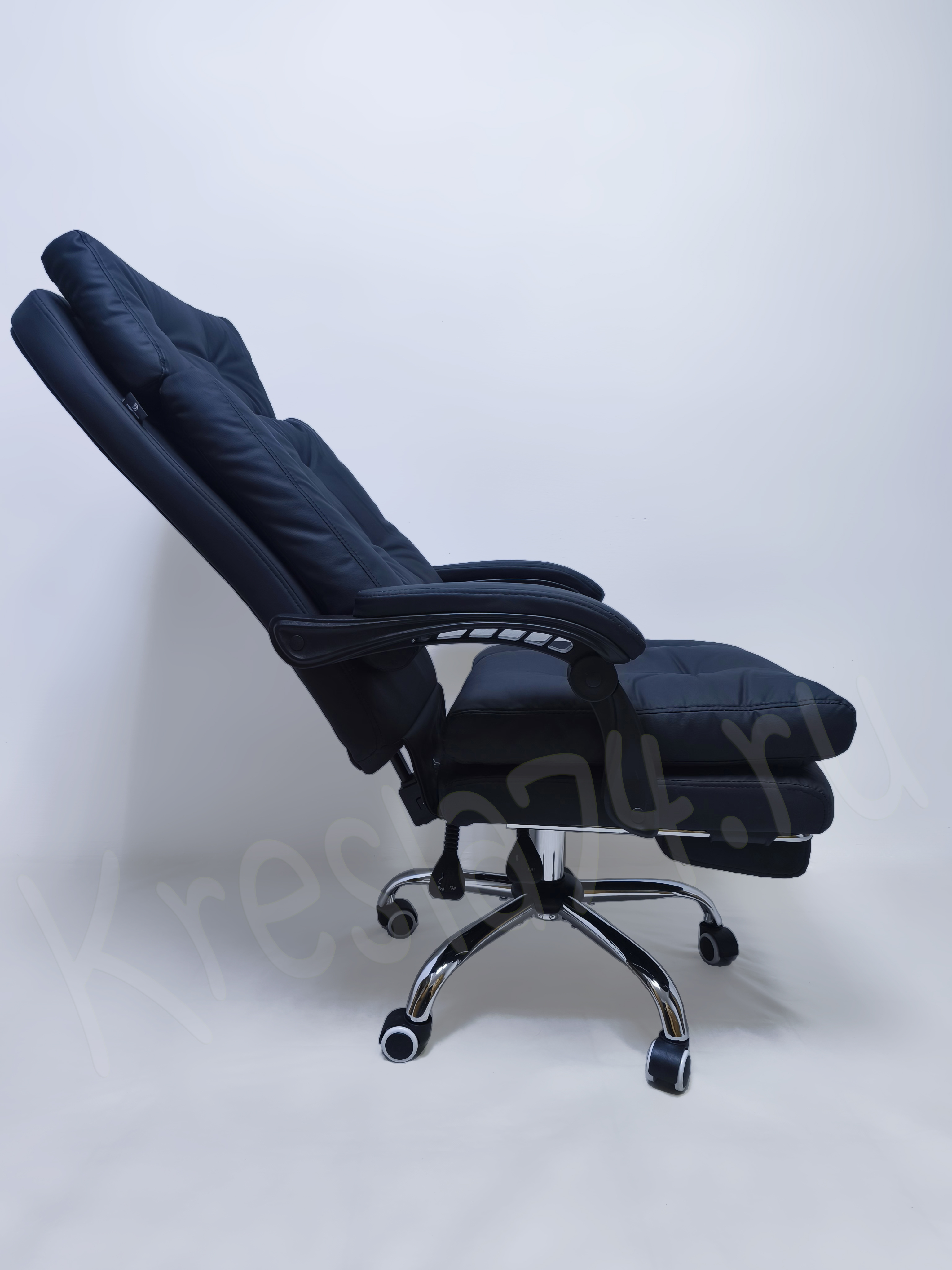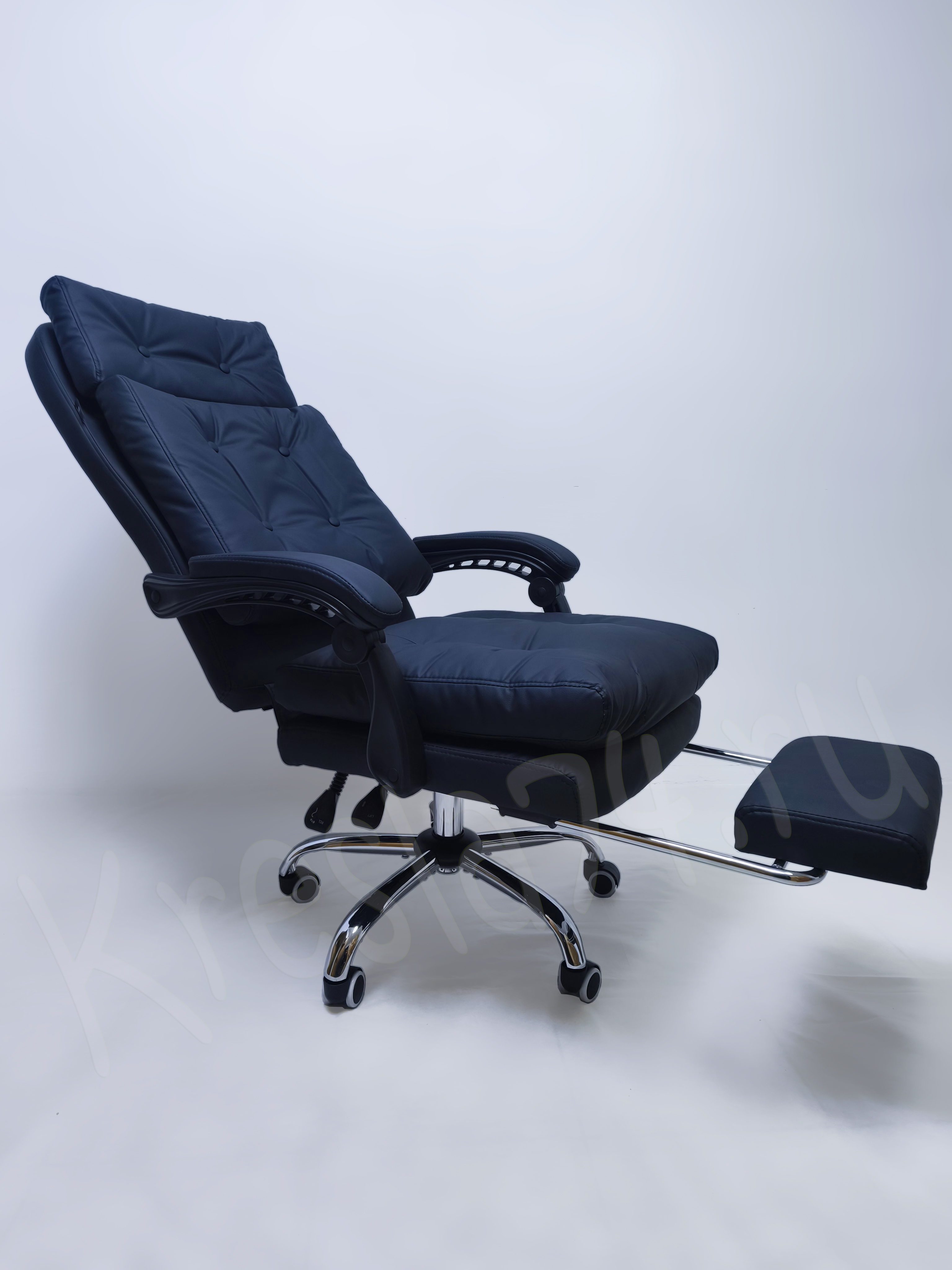Офисное компьютерное кресло черного цвета из эко кожи с выдвижной подставкой под ноги для удобного и комфортного времяпровождения. Кресло пышное и очень мягкое.