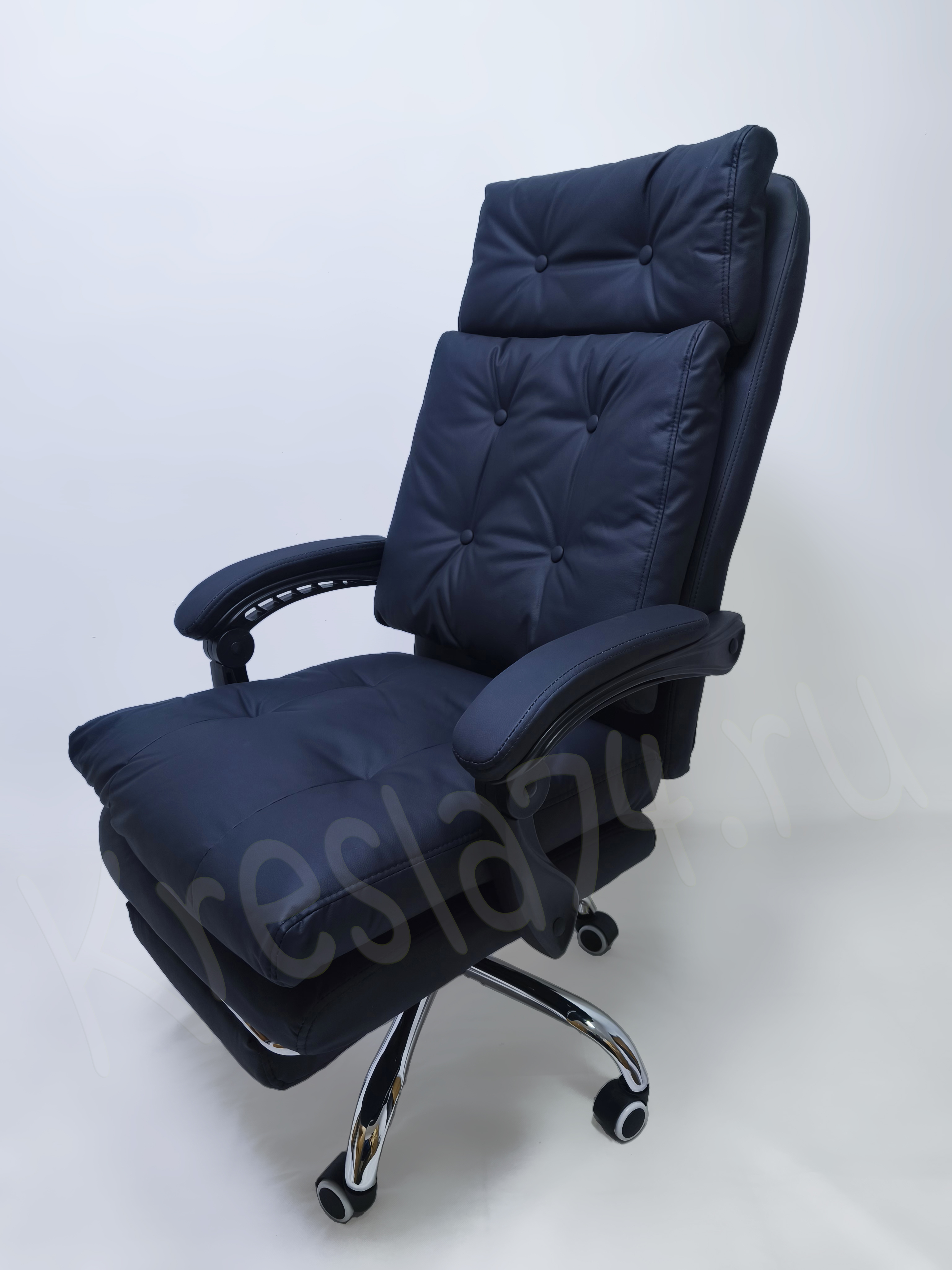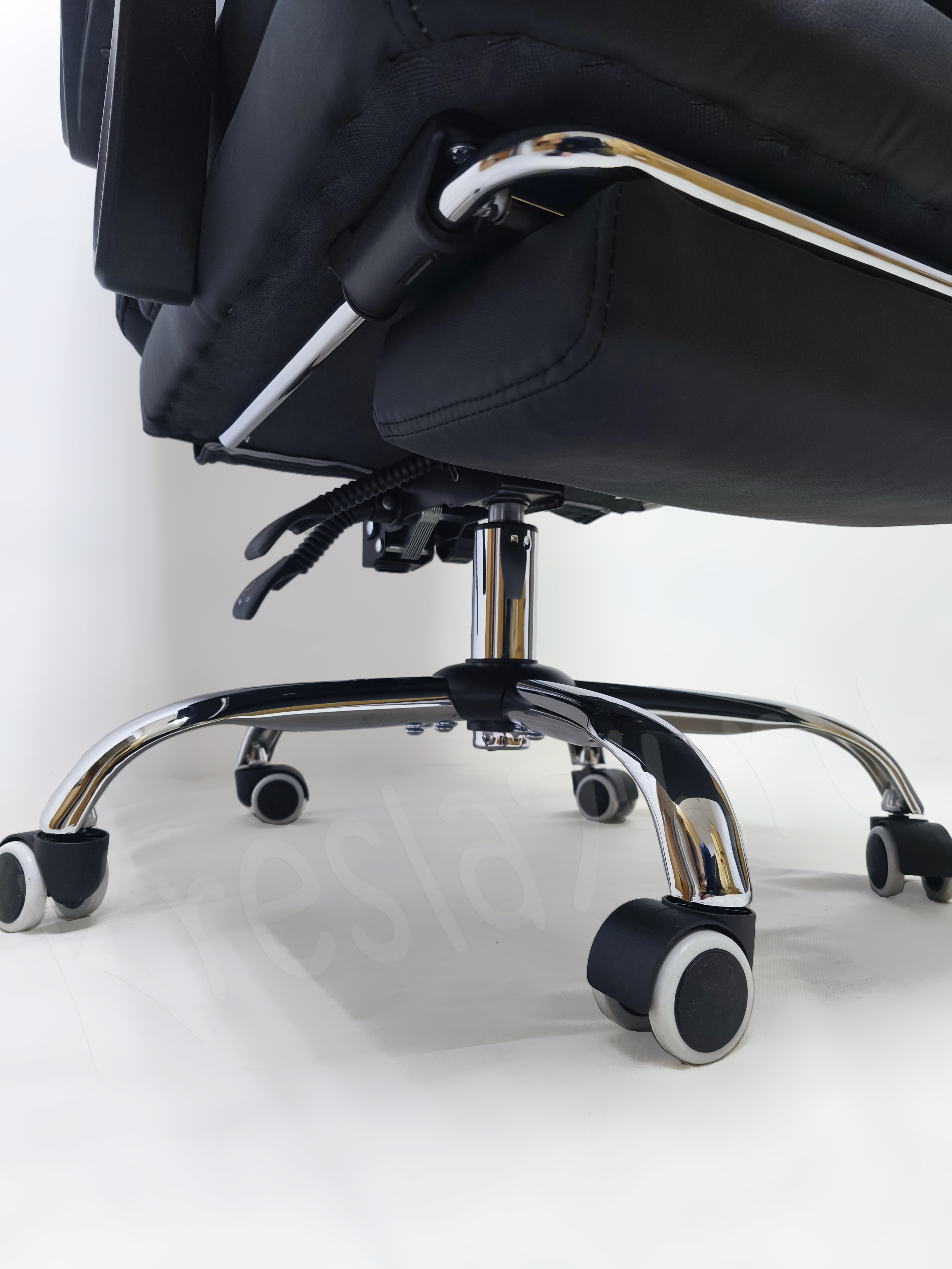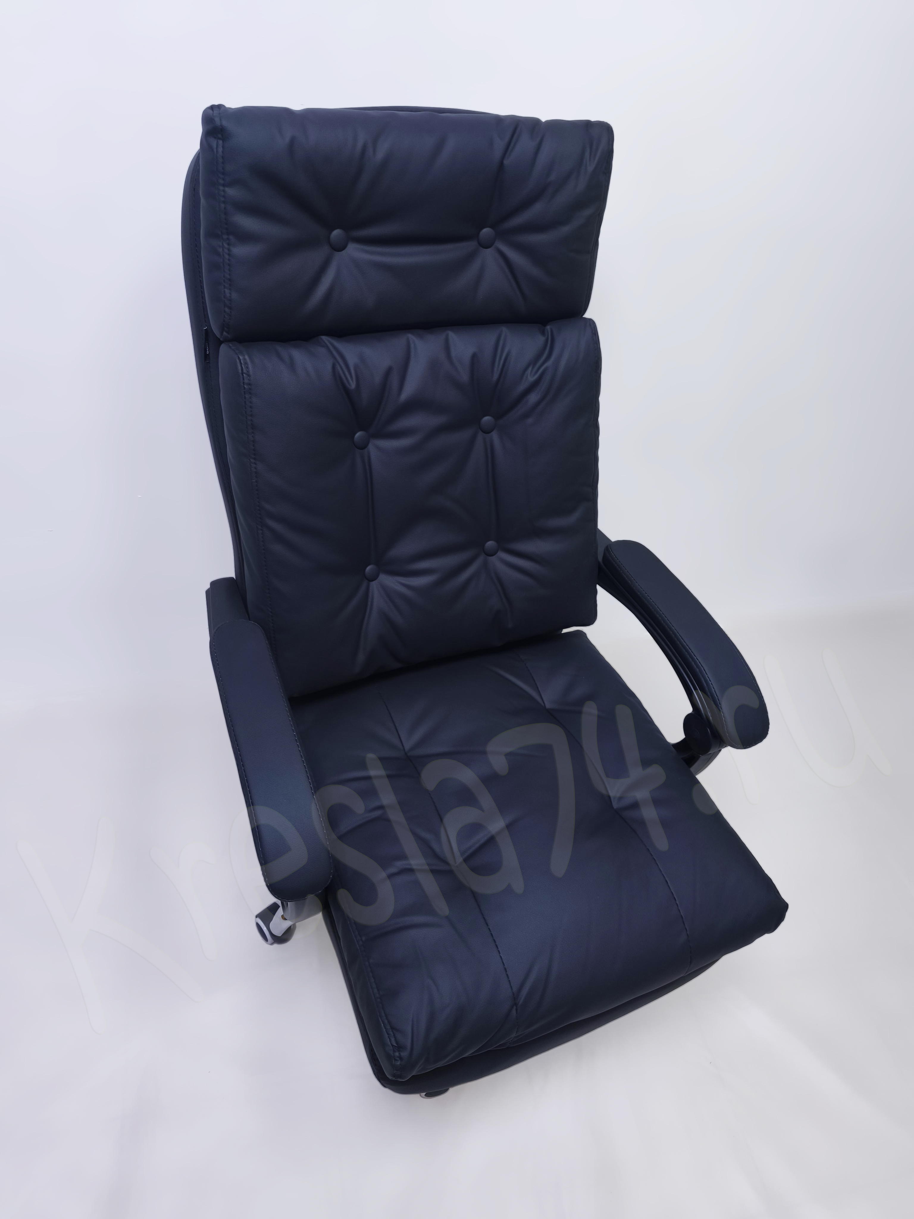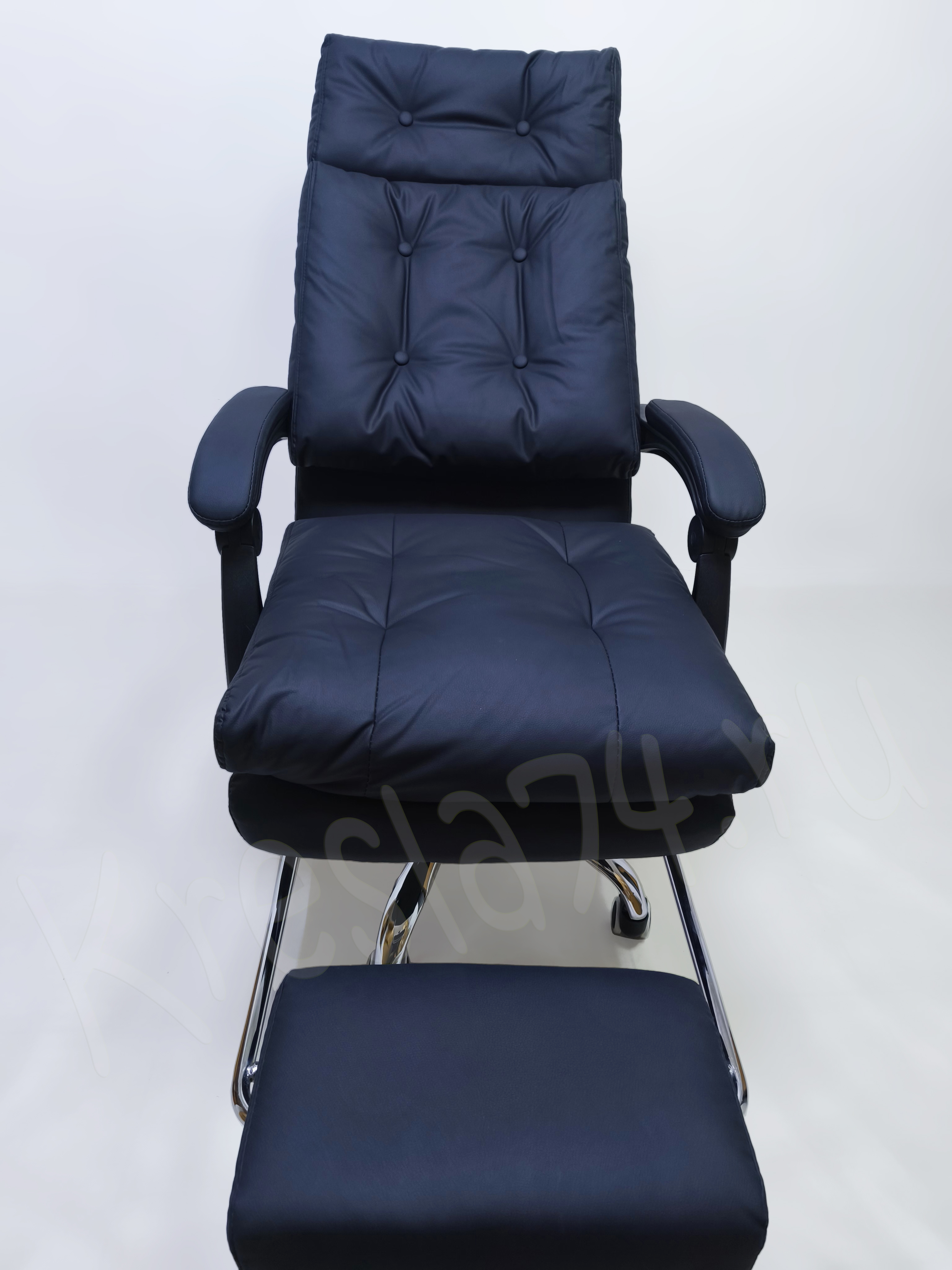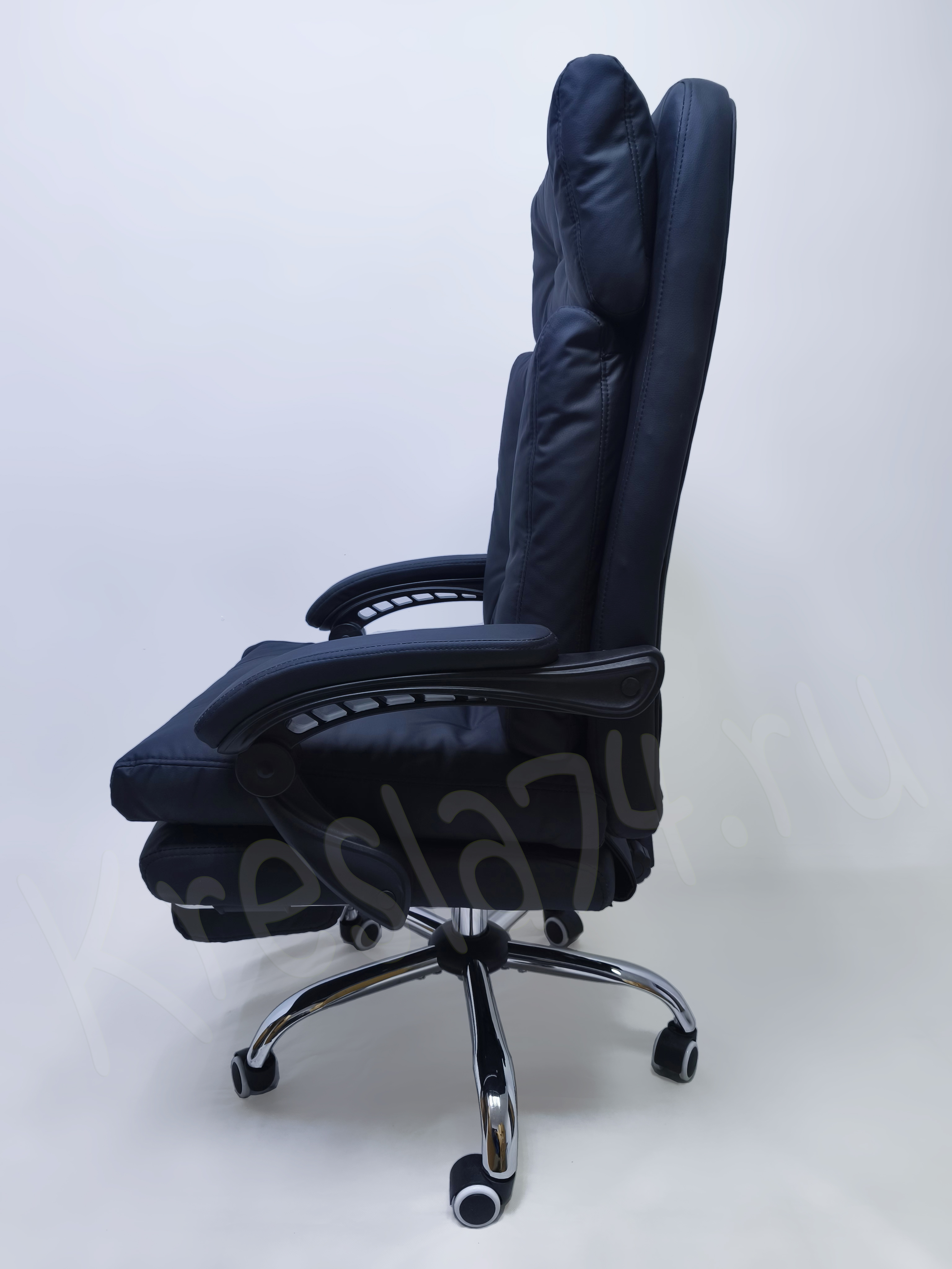 Офисное компьютерное кресло черного цвета из эко кожи с выдвижной подставкой под ноги для удобного и комфортного времяпровождения. Кресло пышное и очень мягкое.